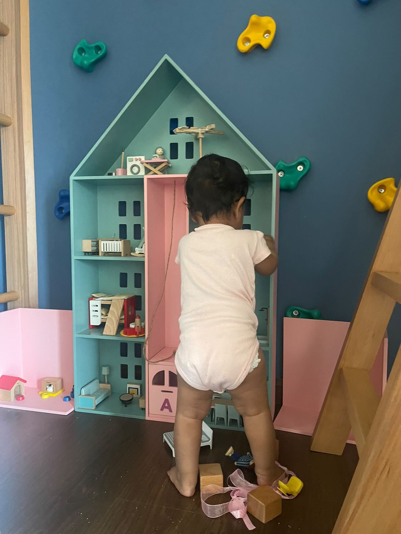 The doll house is being enjoyed by little one. She is growing up with your doll house. Now she can stand and wats to access the upper floors.