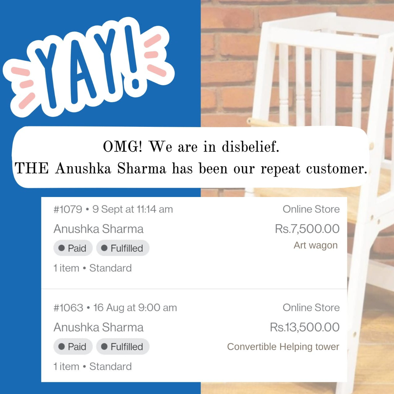 It makes us very happy to share that Anushka Sharma has made a repurchase from our website.