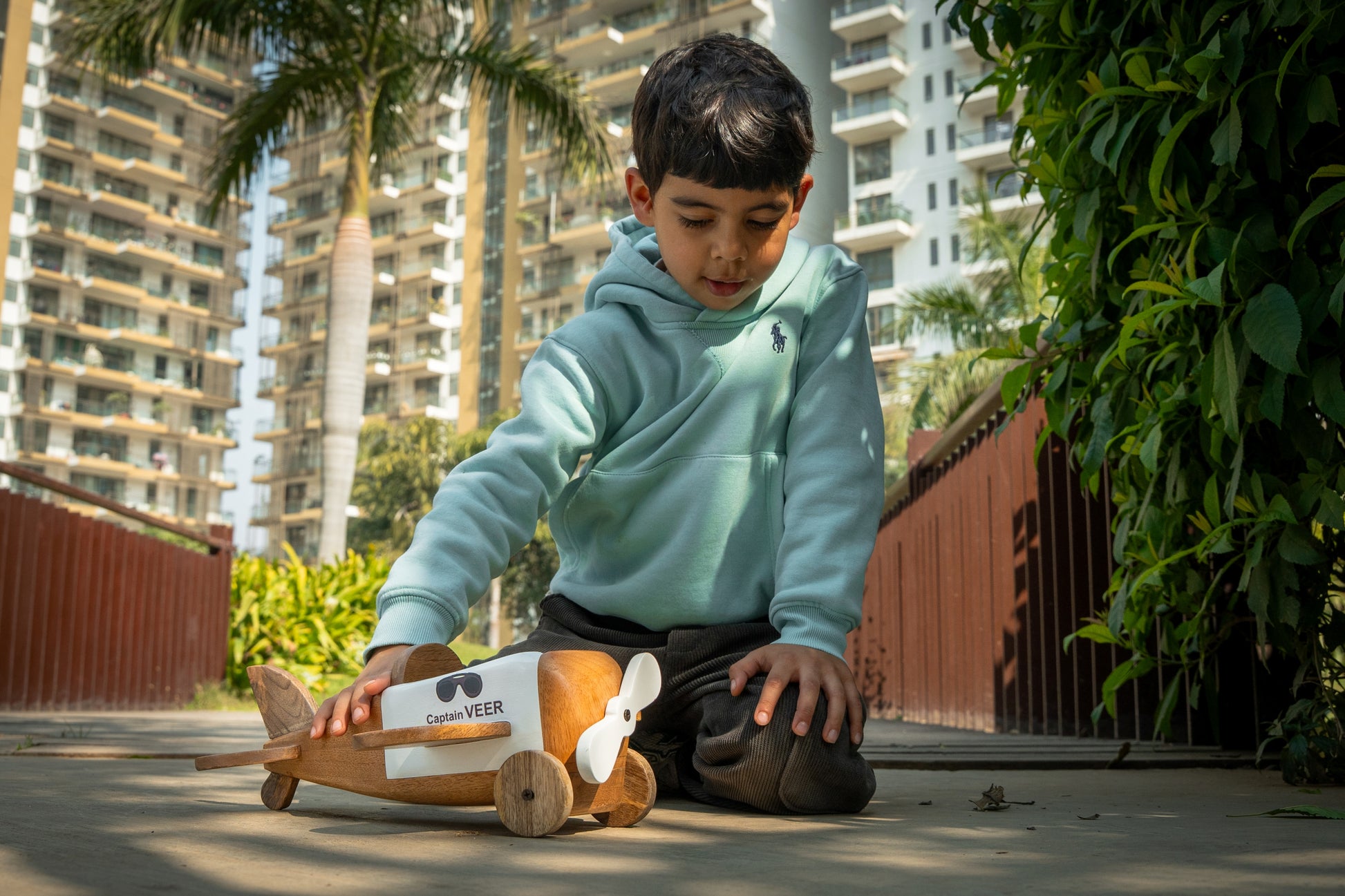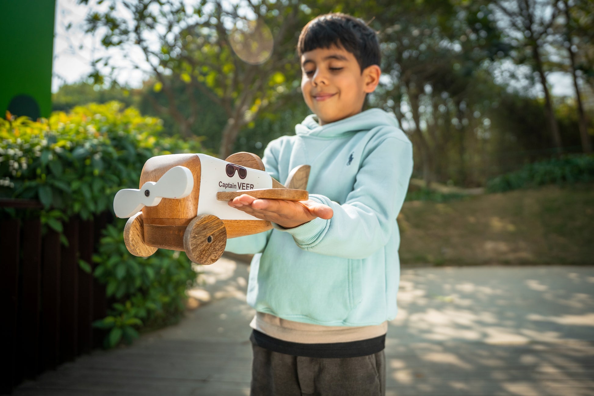 Handcrafted from sustainable, rich-grained mango wood, this vintage-inspired aviation toy is designed for little dreamers with big imaginations. Featuring a smooth-spinning propeller and a sturdy, tactile finish, it serves as both a delightful companion for floor-play adventures and an accent for a curated nursery.