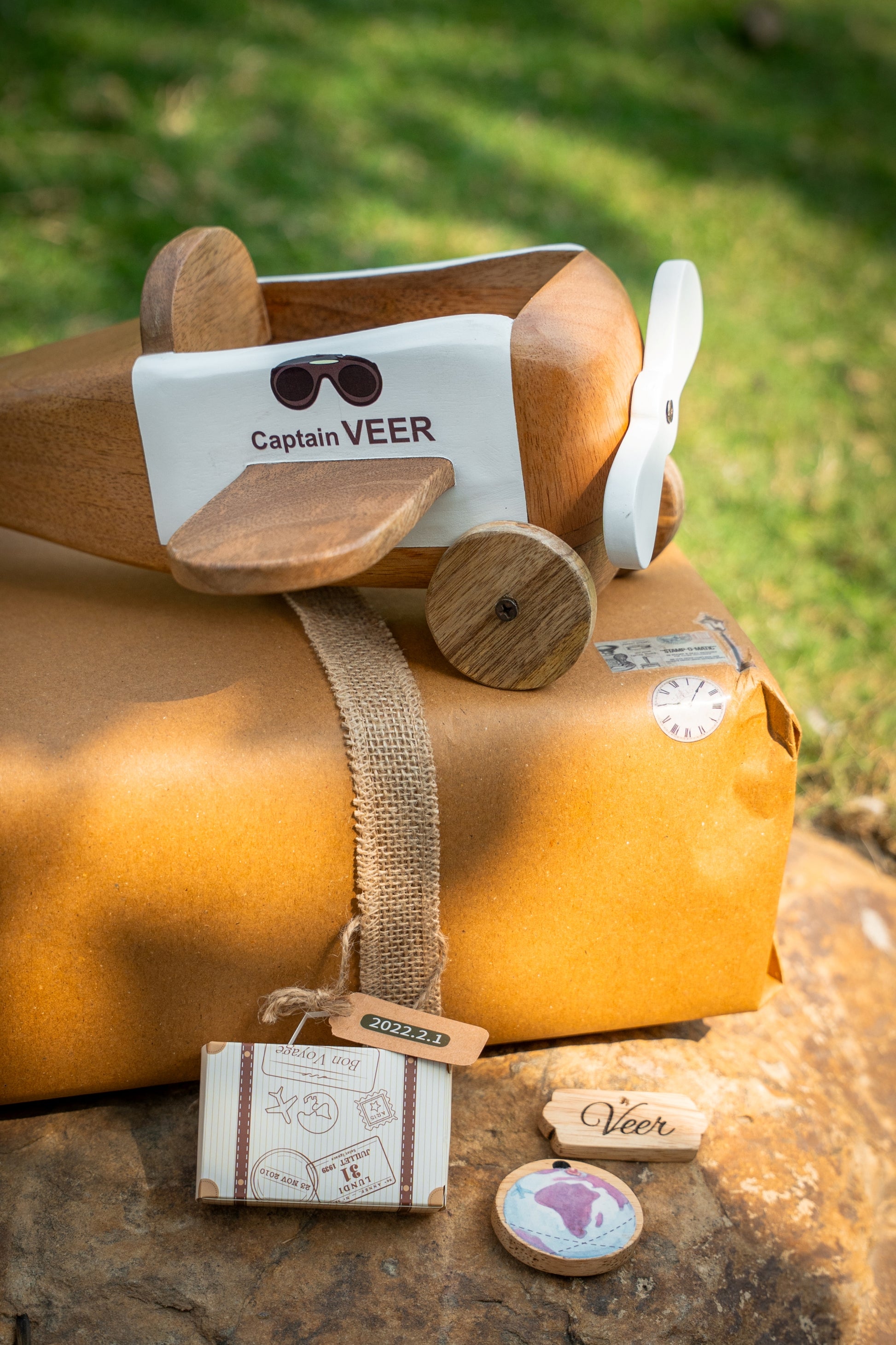The wooden Keepsake Aeroplane can be customised with the child’s name.