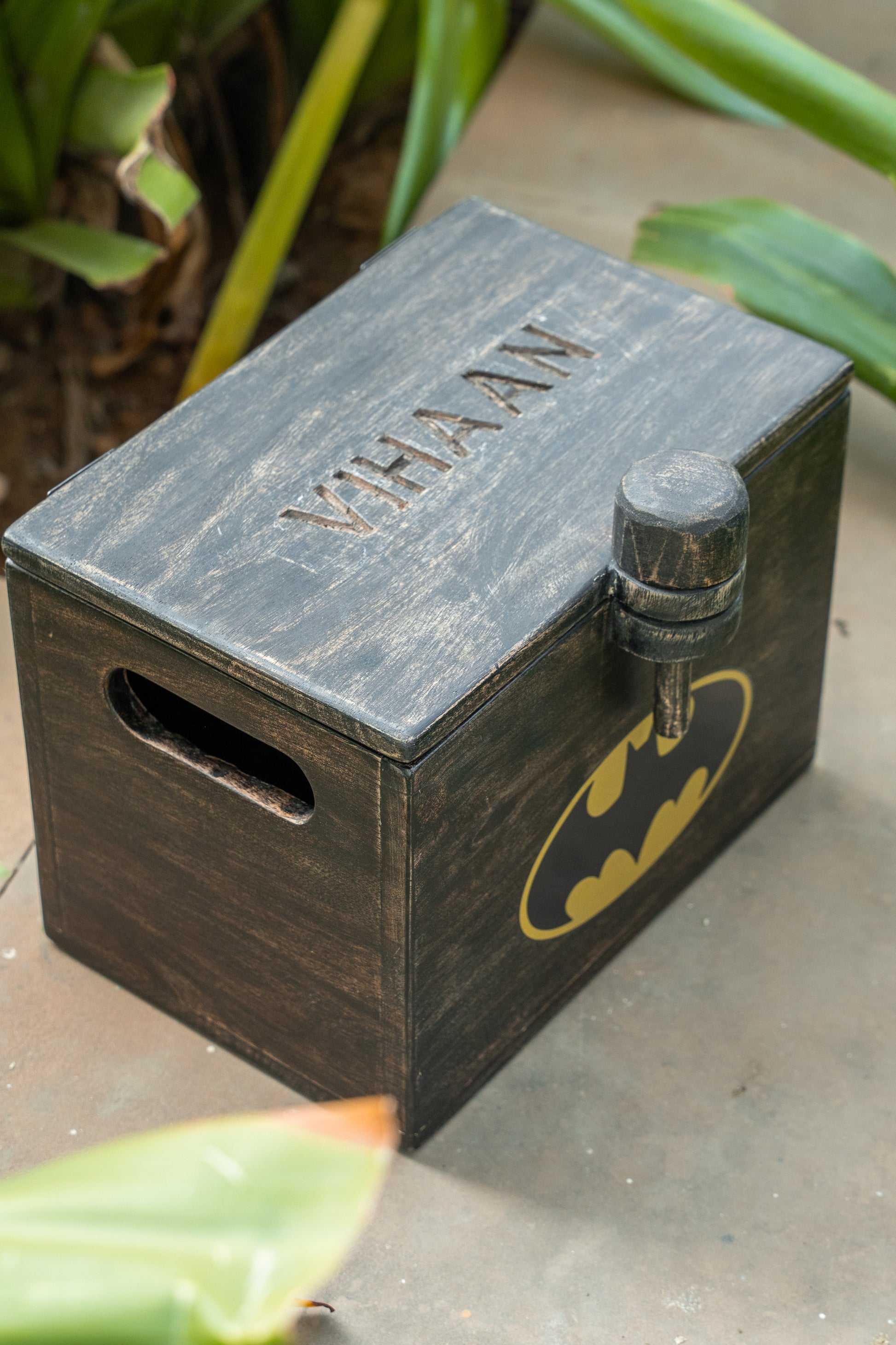 Handcrafted from premium mango wood with a unique distressed dark finish, this storage chest is designed for the little protector in your life. Featuring a bold iconic emblem and a sturdy wooden handmade latch, it provides a secure and stylish home for action figures, gadgets, or secret treasures. It’s a functional statement piece that brings a touch of cinematic adventure to a sophisticated bedroom or playroom.