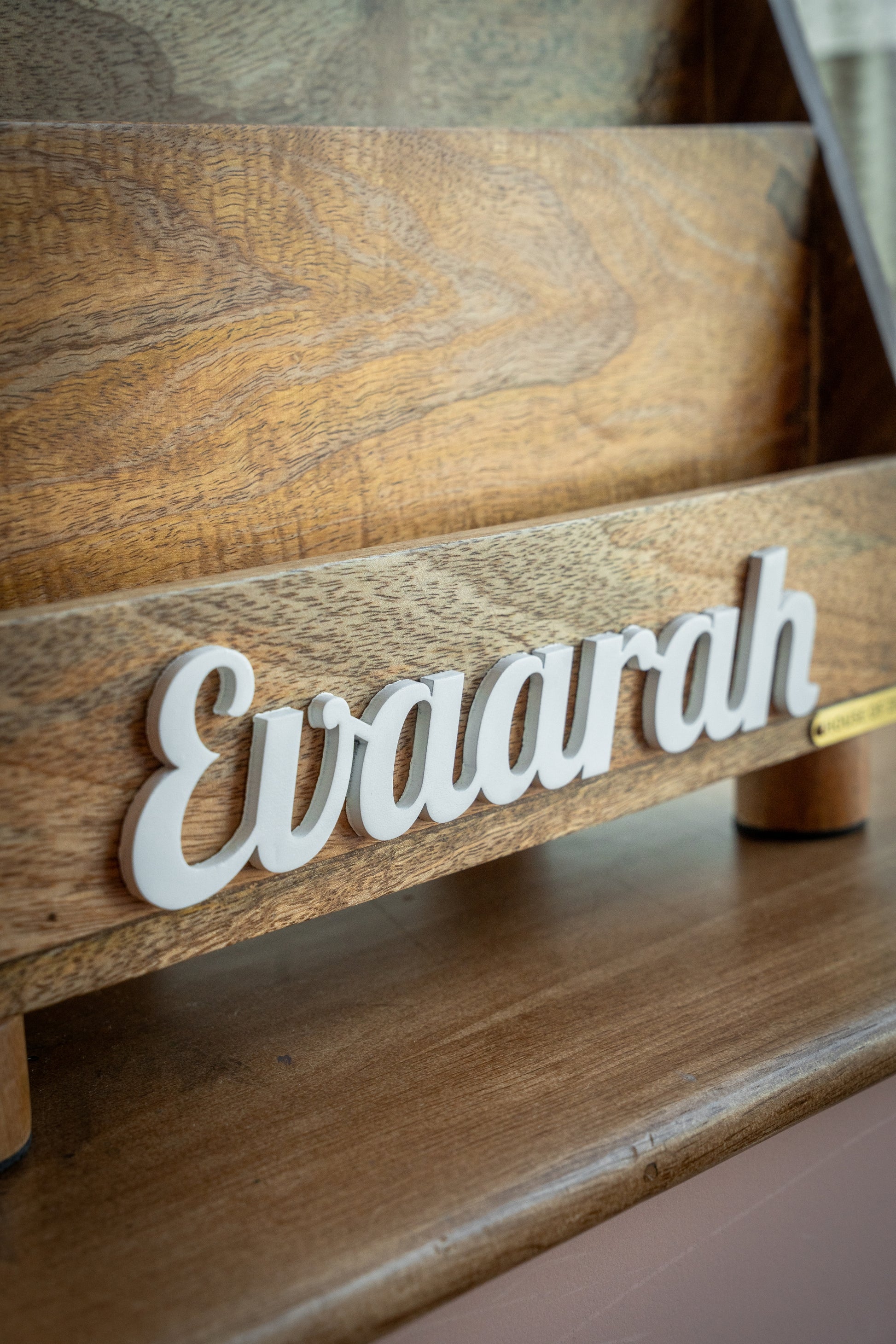 This multi-tiered bookshelf is handcrafted from solid, premium Mango Wood, designed to display books and treasures at the perfect height for little hands.In this cozy little nook. Children can curl up, choose a favourite tale, and drift into dreamy adventures all on their own.