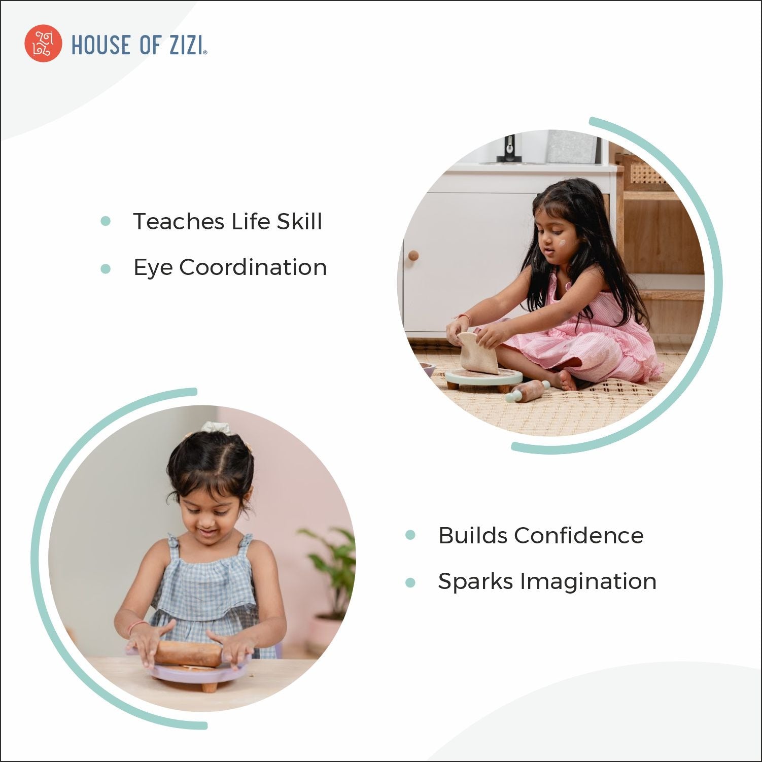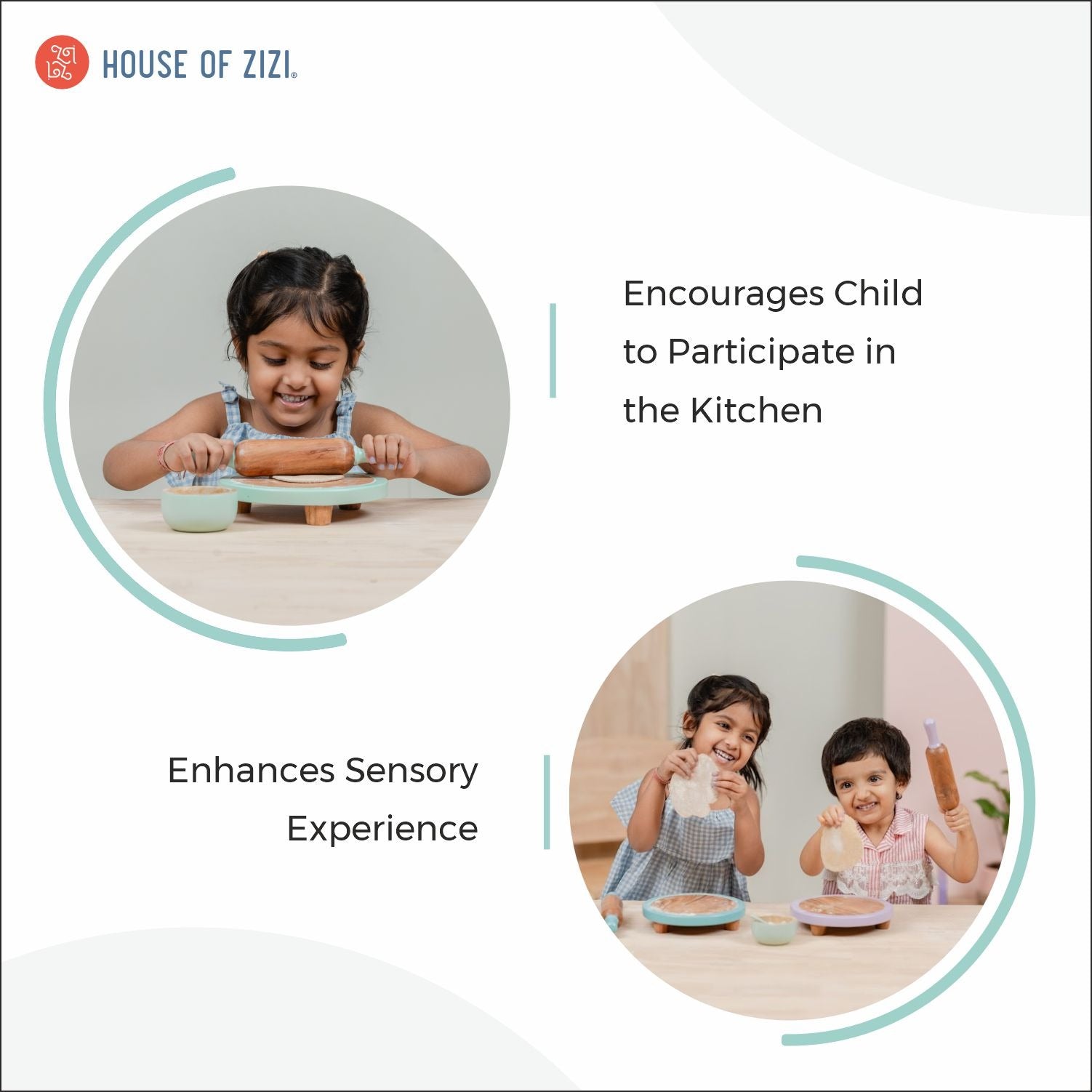 House of Zizi's Rolling Pin and Rolling Board are child-sized versions of the traditional kitchen tools used for rolling kitchen and play doughs. They are designed to be safer, comfortable and easier for children to handle while they engage in baking and cooking activities at home.