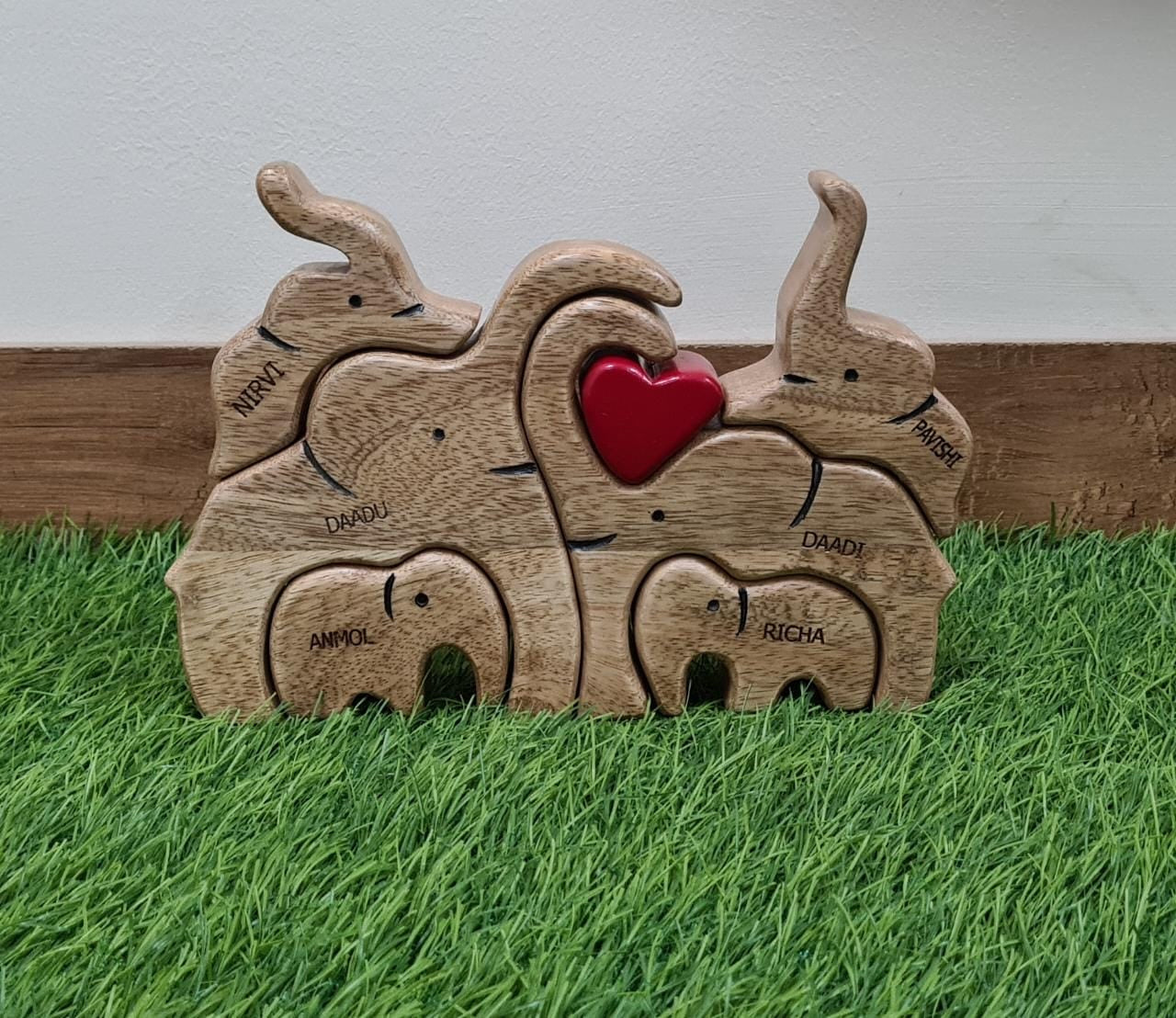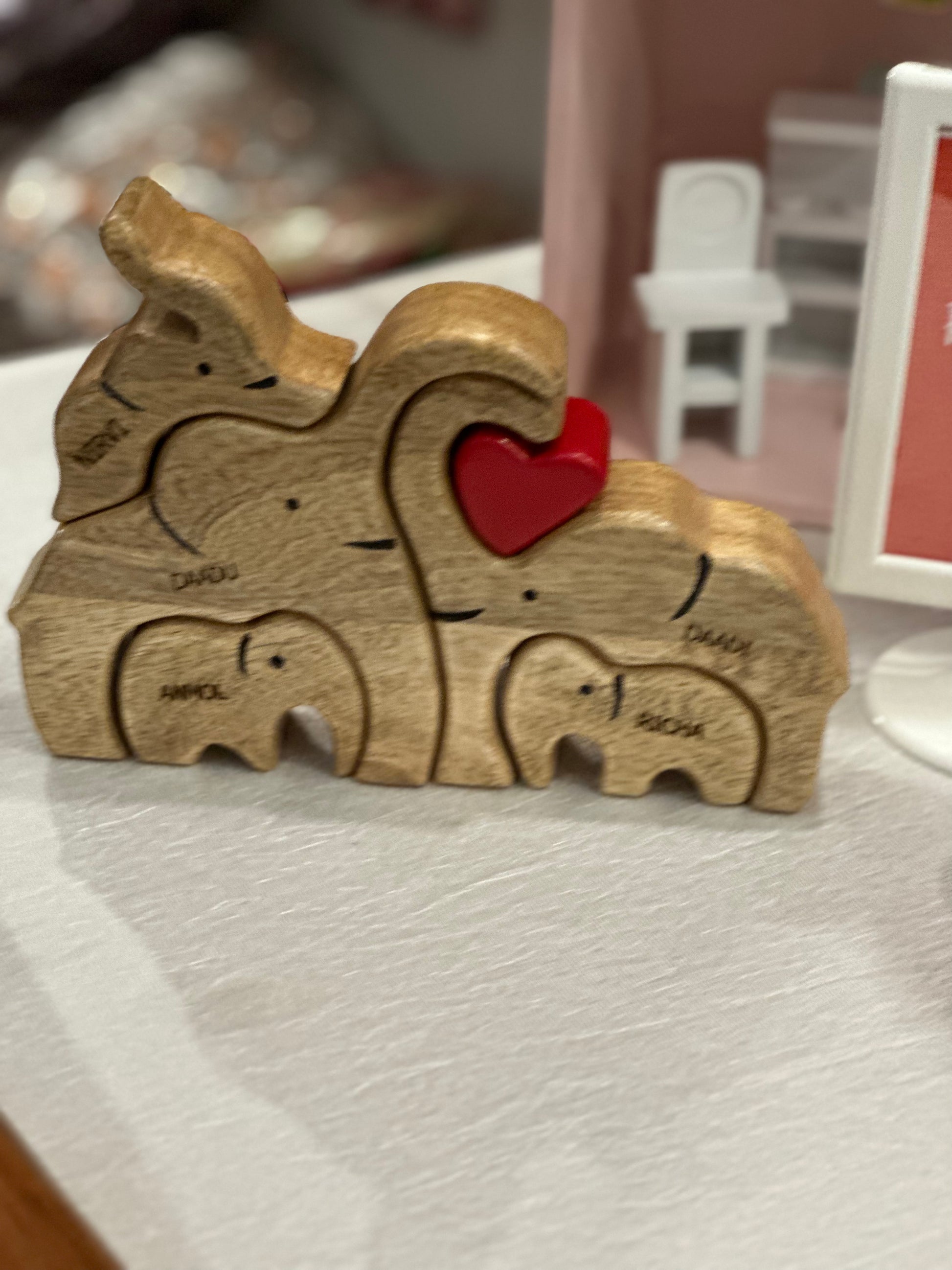 House of Zizi presents their first family puzzle. Made of Mango wood it is a great addition for any home. Each elephant is personalised with a family member name.